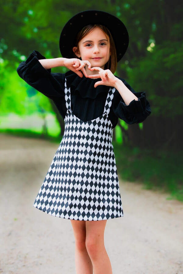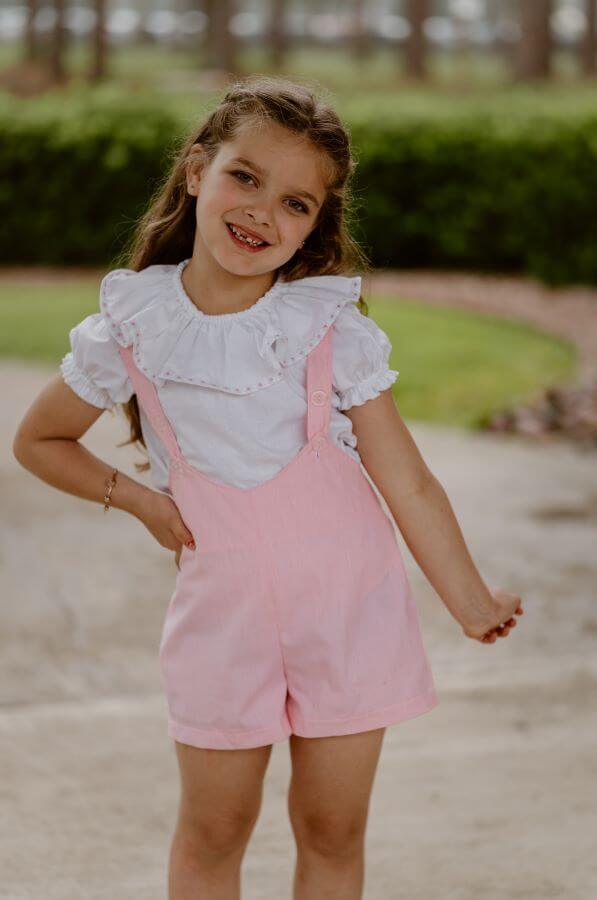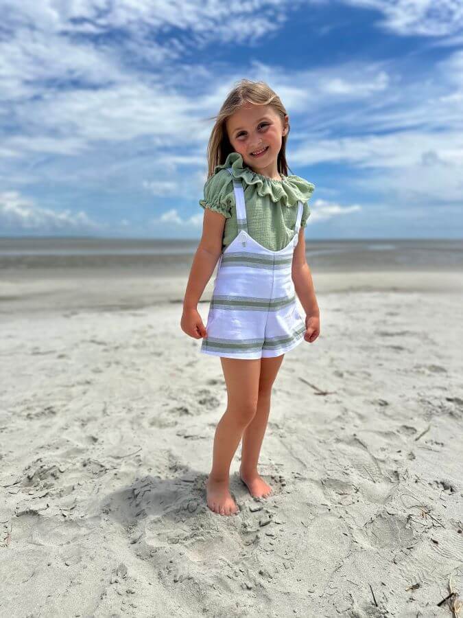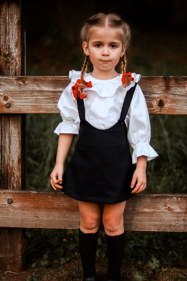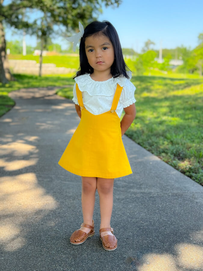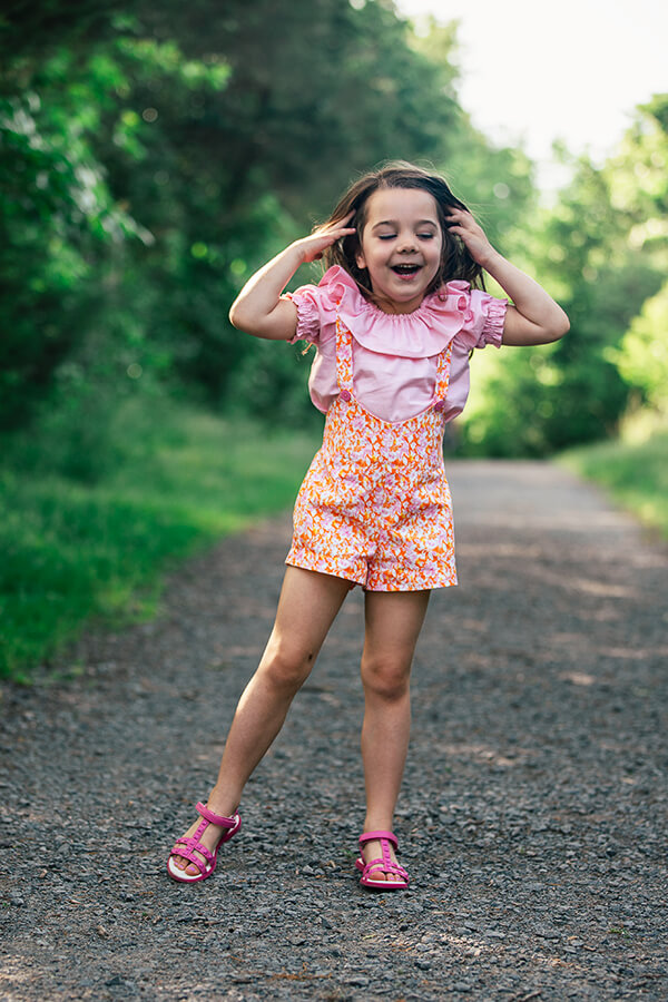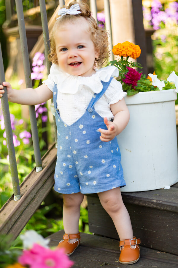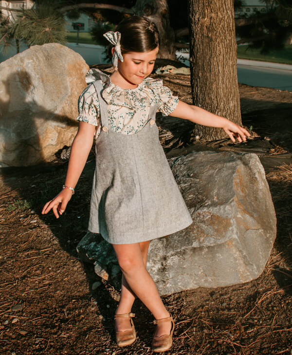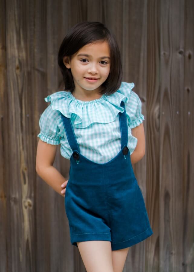 Gabby is a vintage inspired bottom that exudes charm and provides maximum comfort. It’s U-shaped front and adjustable suspenders ensure a versatile fit, while the elastic back offers ease of wear. It is available in both a short and skirt options. Perfect for warm summer days or that special back to school outfit. You can easily dress them up with the Erin top or go for a more casual look with the Louise top. The various style options guarantee a match for any little girl’s taste.