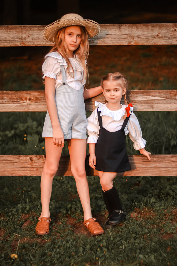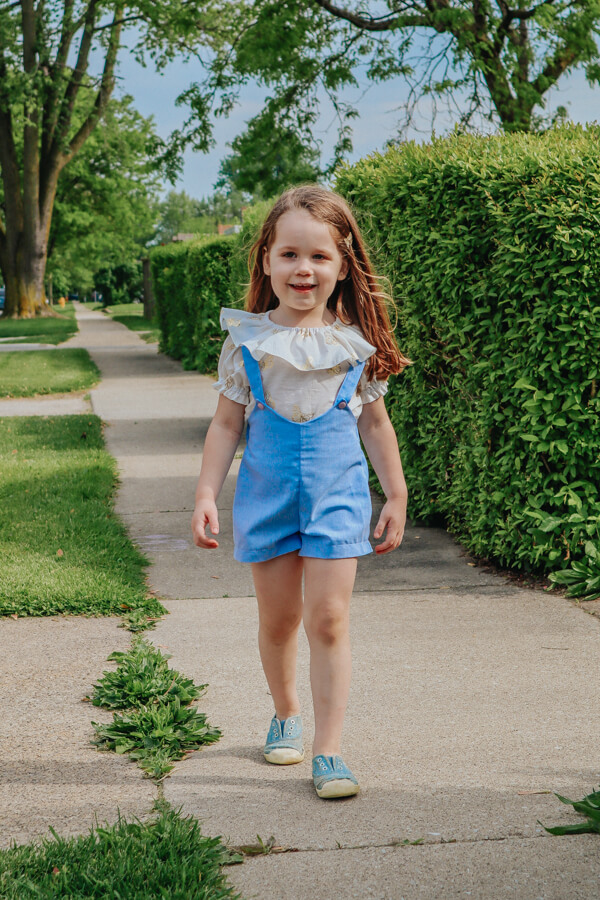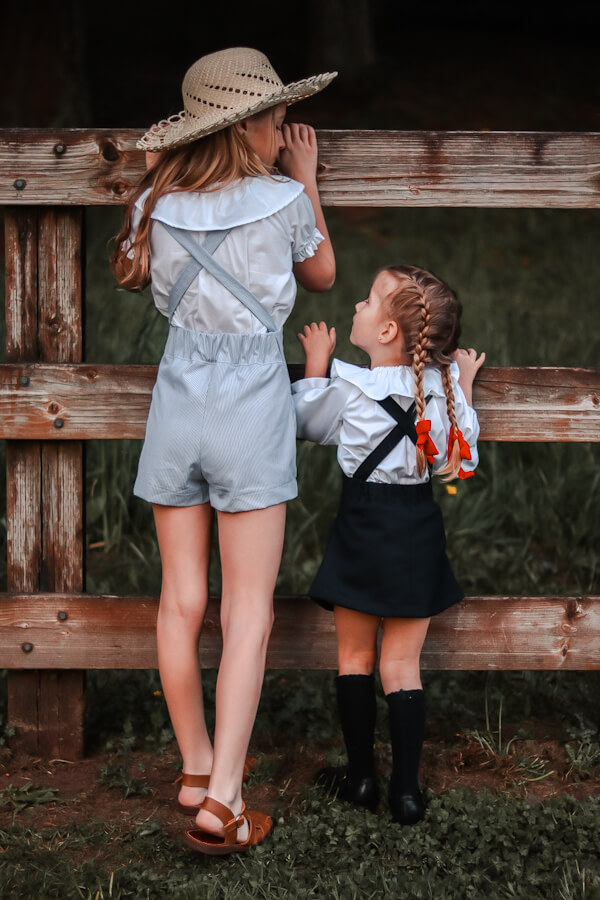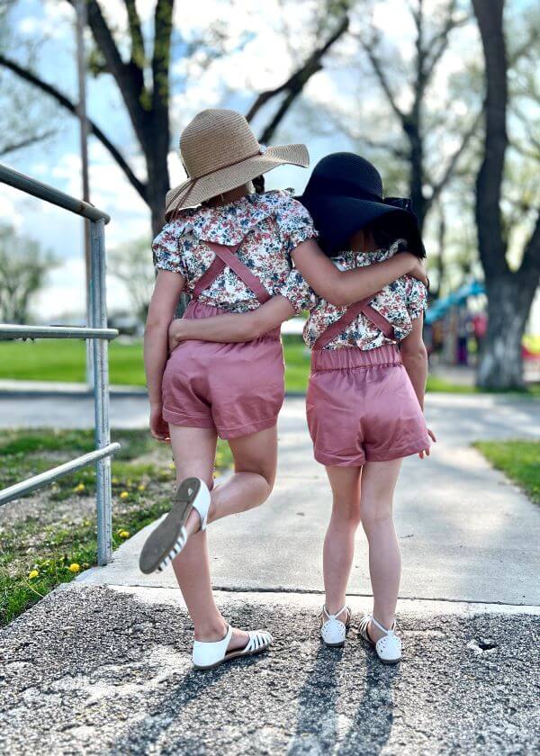 I am so excited to introduce you to my first pattern! About a year ago my sister, Gabi, sent me a photo of the cutest little suspender shorts she wanted for her boys. My daughter had a similar vintage pair that I just loved! Needless to say, I was excited to take on the challenge of creating their special outfit! I scoured the internet for a pattern, but not even the depths of google provided any luck. Under the guise of providing for my nephews, I created the pattern for the suspender shorts. Secretly, I was even more excited to use the pattern to sew up the most adorable outfits for my own girls. My sister Gabi is both stylish and adventurous. In the Gabby suspender shorts/skirt your child will look preciously put together while taking on their day to day endeavors.