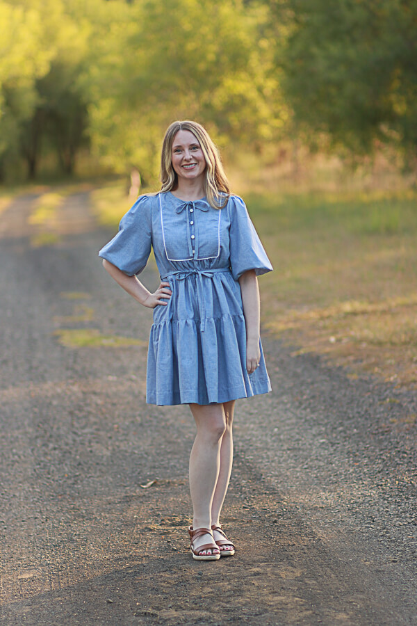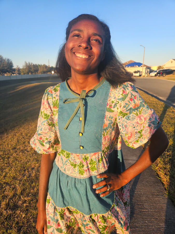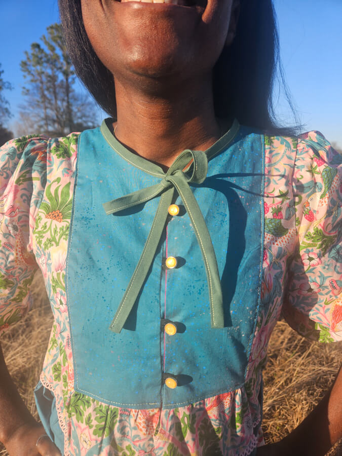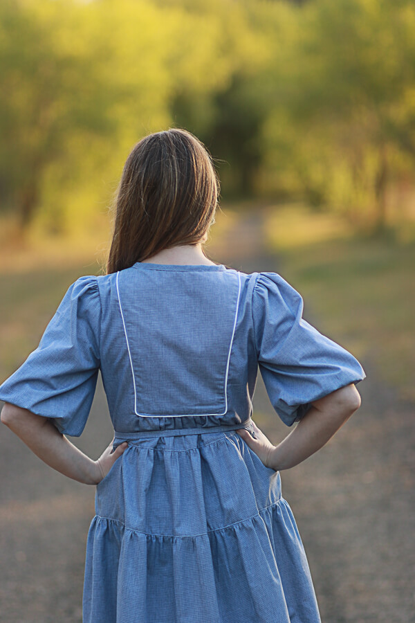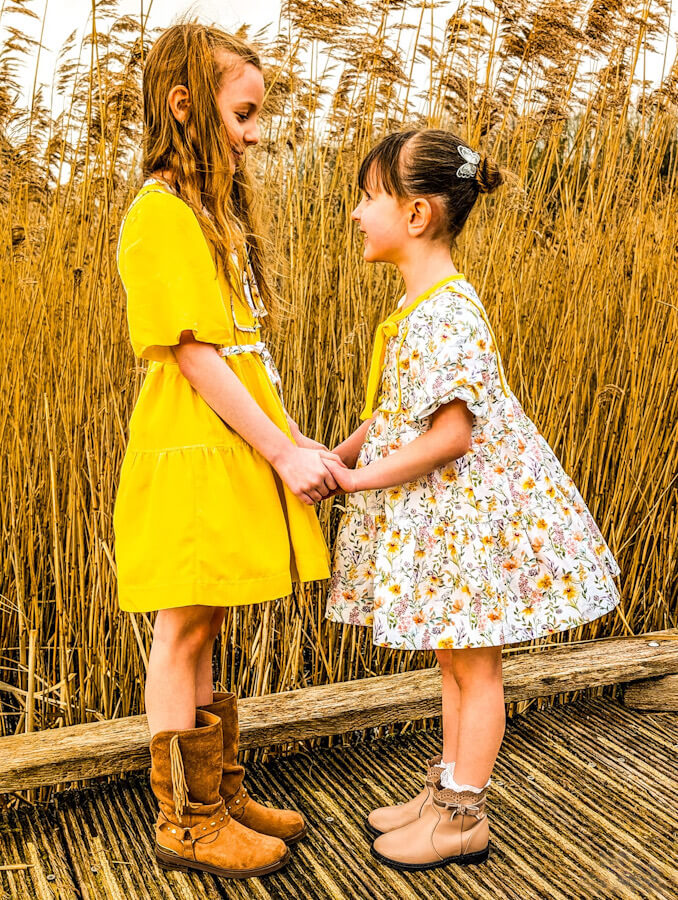 The Freya Sewing Pattern is a timeless, vintage-inspired top and dress pattern designed for girls, tweens, and women, offering exceptional versatility and classic charm. Perfect for spring and year-round wear, Freya is ideal for woven fabrics such as cotton, linen, and soft florals. This sewing pattern features a beautifully detailed, fully lined plastron bib on both the front and back, delicate bodice gathering, and fully lined puff sleeves with no elastic for a polished finish. Freya can be sewn as a hip-length top or as a tiered dress in either standard or vintage length, with the option to add a removable tie waist for a more defined silhouette or wear it as a relaxed babydoll style. Available in girls’ sizes 2T–9/10, tweens’ sizes 10–16, and women’s sizes 0–20, the Freya pattern is thoughtfully designed for comfortable movement, growth, and heirloom-quality sewing projects that blend vintage boho style with modern wearability.