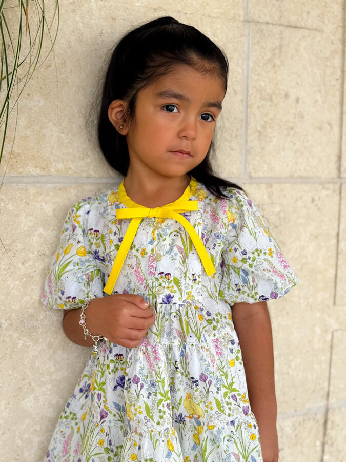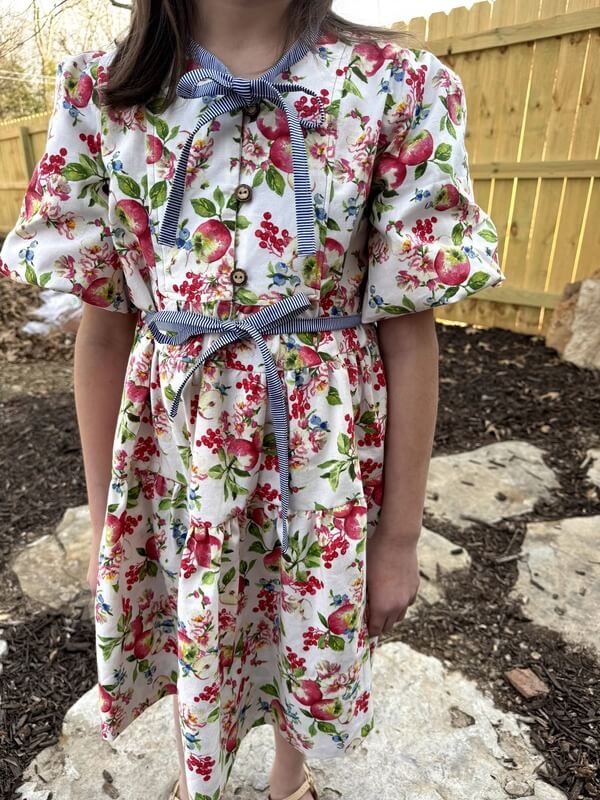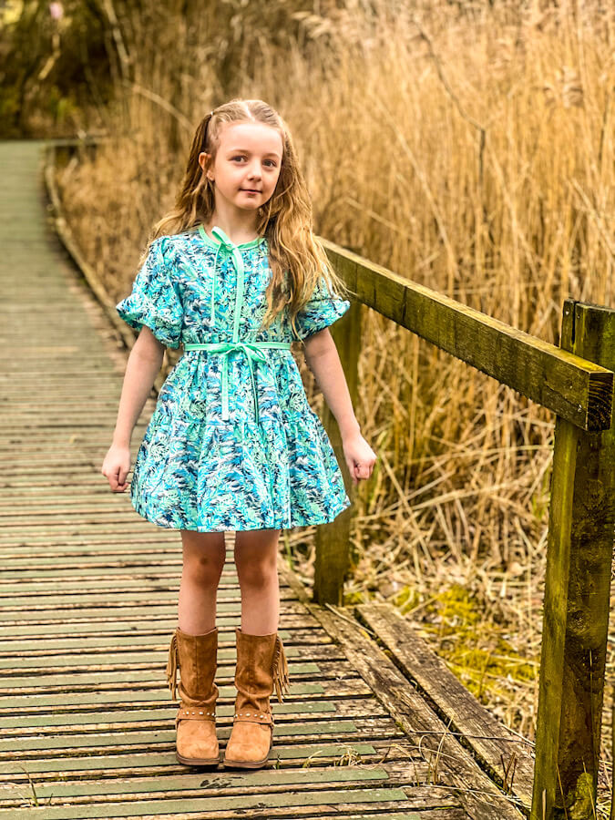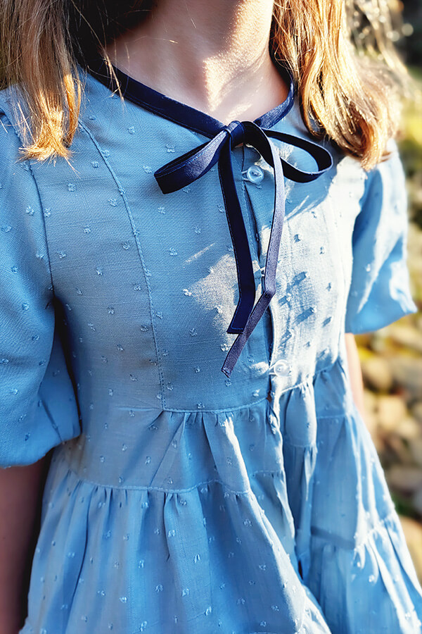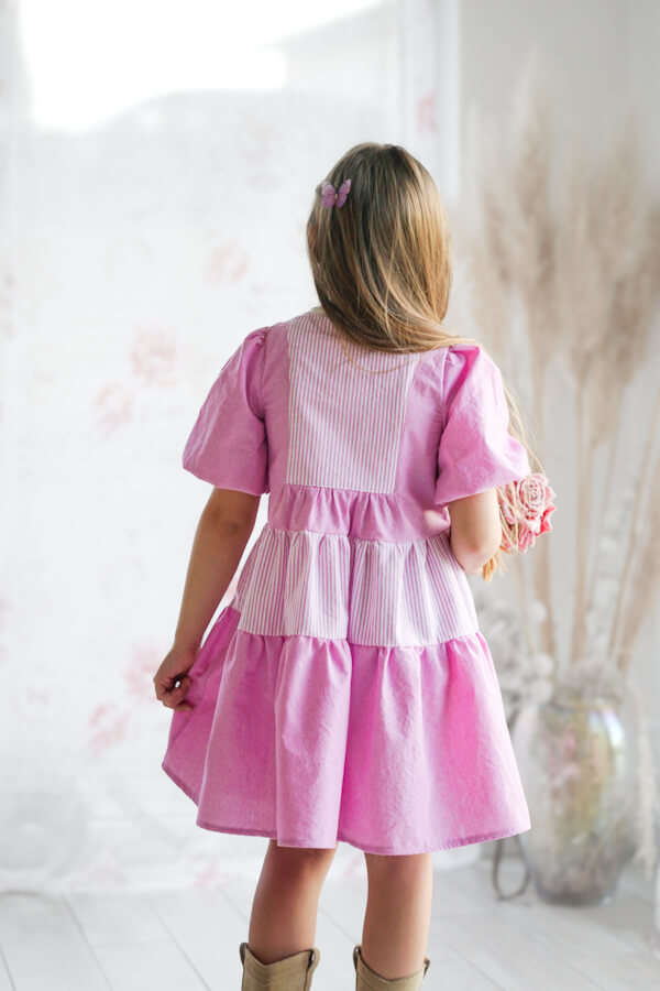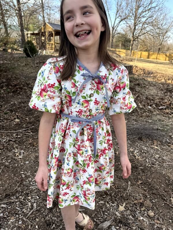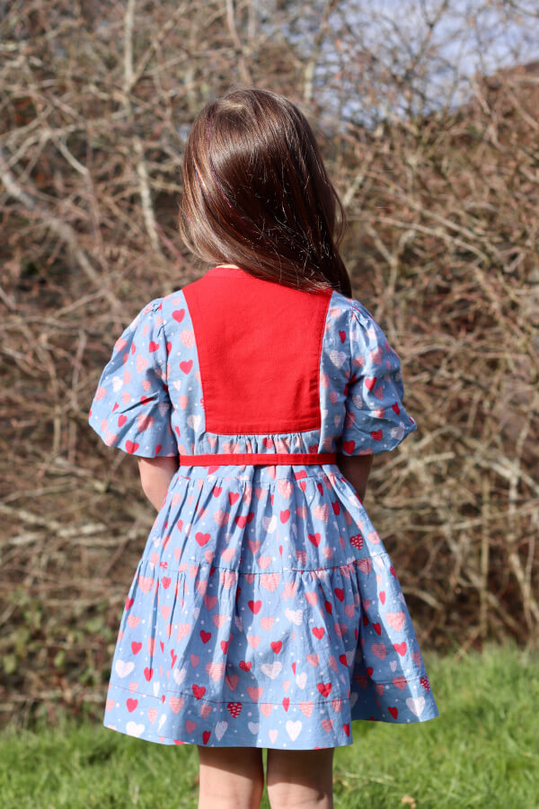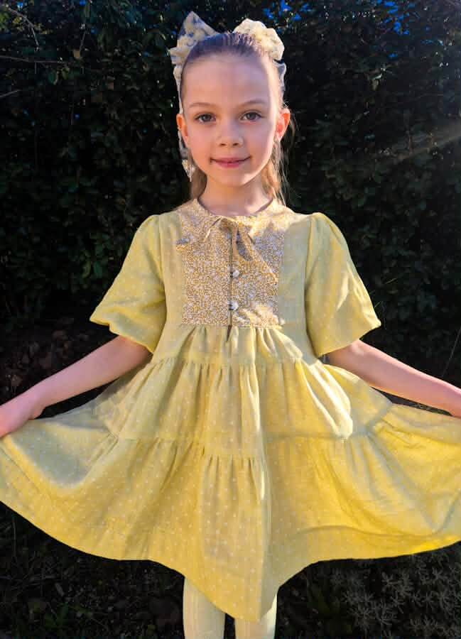 The Freya Sewing Pattern is a timeless, vintage-inspired top and dress pattern designed for girls, tweens, and women, offering exceptional versatility and classic charm. Perfect for spring and year-round wear, Freya is ideal for woven fabrics such as cotton, linen, and soft florals. This sewing pattern features a beautifully detailed, fully lined plastron bib on both the front and back, delicate bodice gathering, and fully lined puff sleeves with no elastic for a polished finish. Freya can be sewn as a hip-length top or as a tiered dress in either standard or vintage length, with the option to add a removable tie waist for a more defined silhouette or wear it as a relaxed babydoll style. Available in girls’ sizes 2T–9/10, tweens’ sizes 10–16, and women’s sizes 0–20, the Freya pattern is thoughtfully designed for comfortable movement, growth, and heirloom-quality sewing projects that blend vintage boho style with modern wearability.