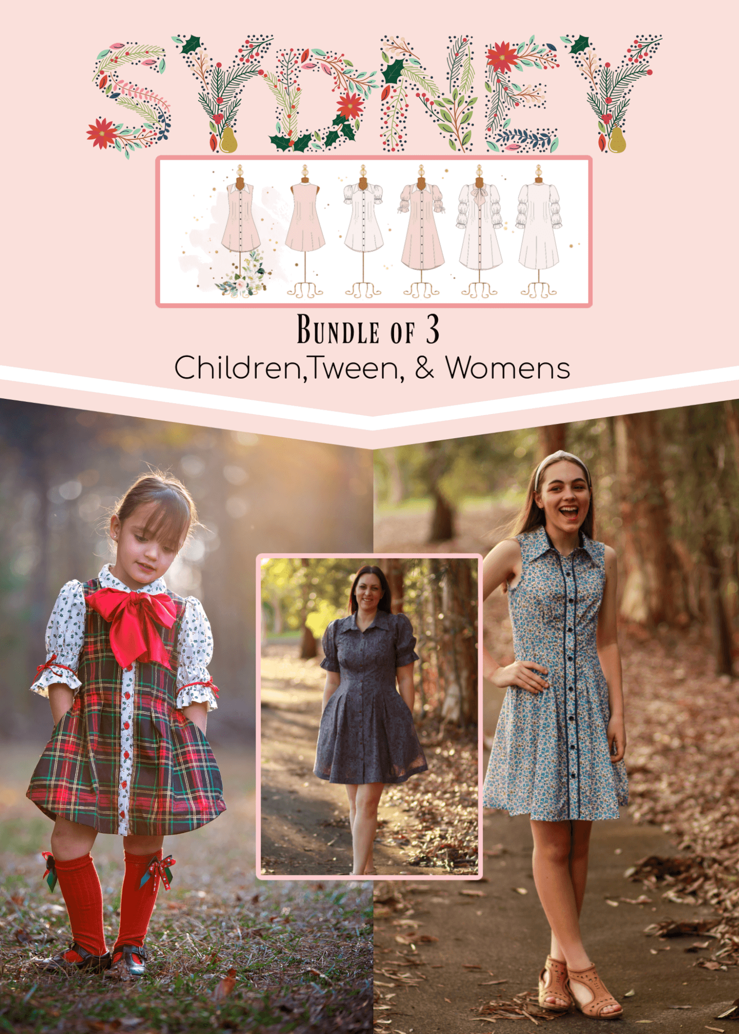 Whether you’re sewing matching mommy-and-me outfits, holiday dresses, photo-ready ensembles, special-occasion looks, church outfits, school events, or everyday vintage-chic fashion, Sydney delivers a polished, professional finish across all sizes. This pattern is ideal for sewists who love classic dress patterns, tailored details, and high-quality women’s, tween, and children’s sewing patterns.