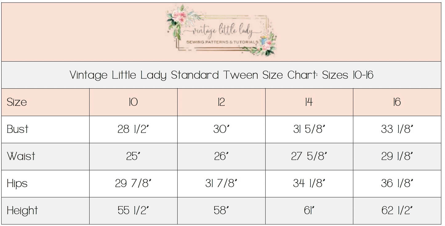 - Sizes: Child 2T-9/10, Tween 10-16, & Womens 0-20
